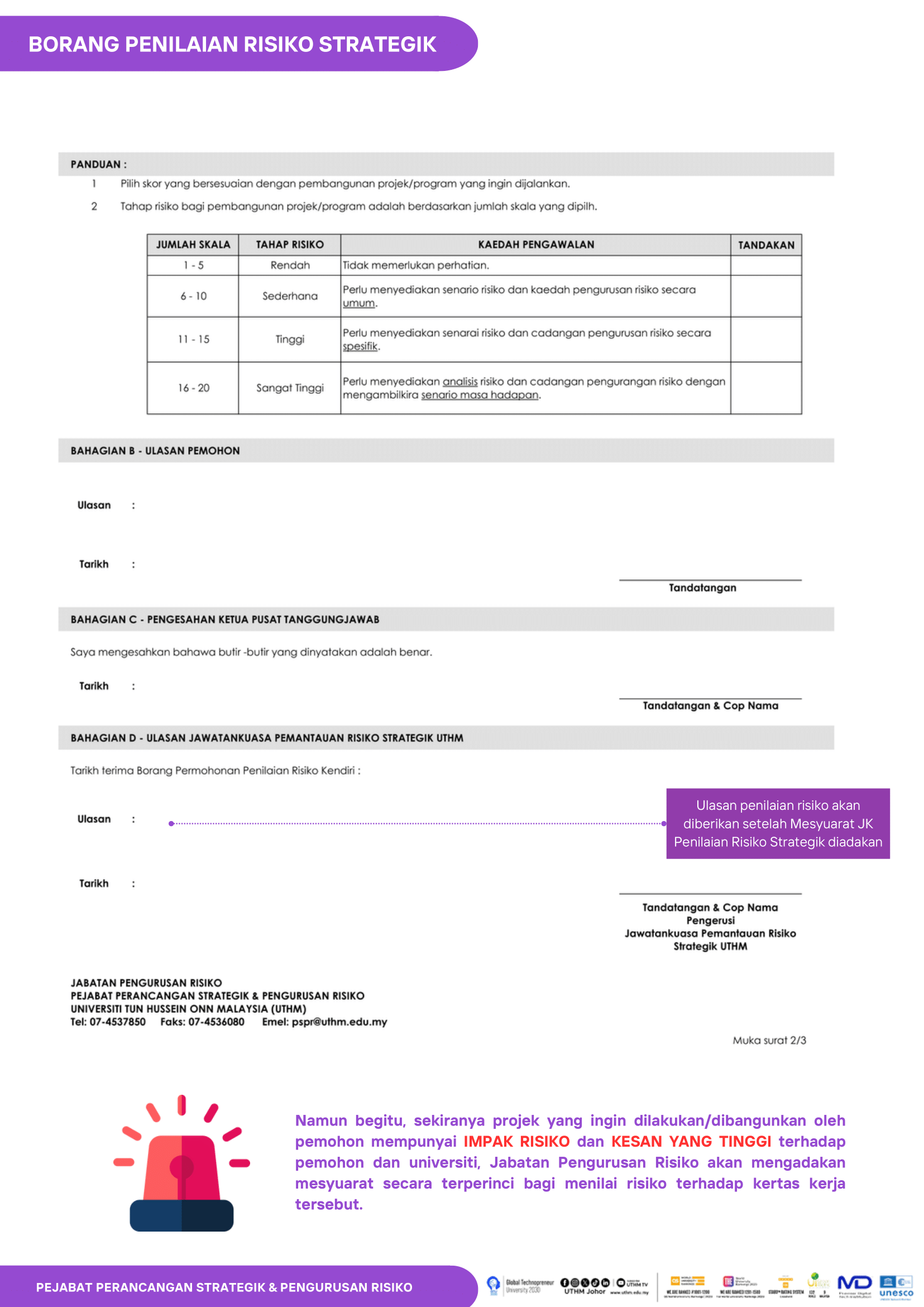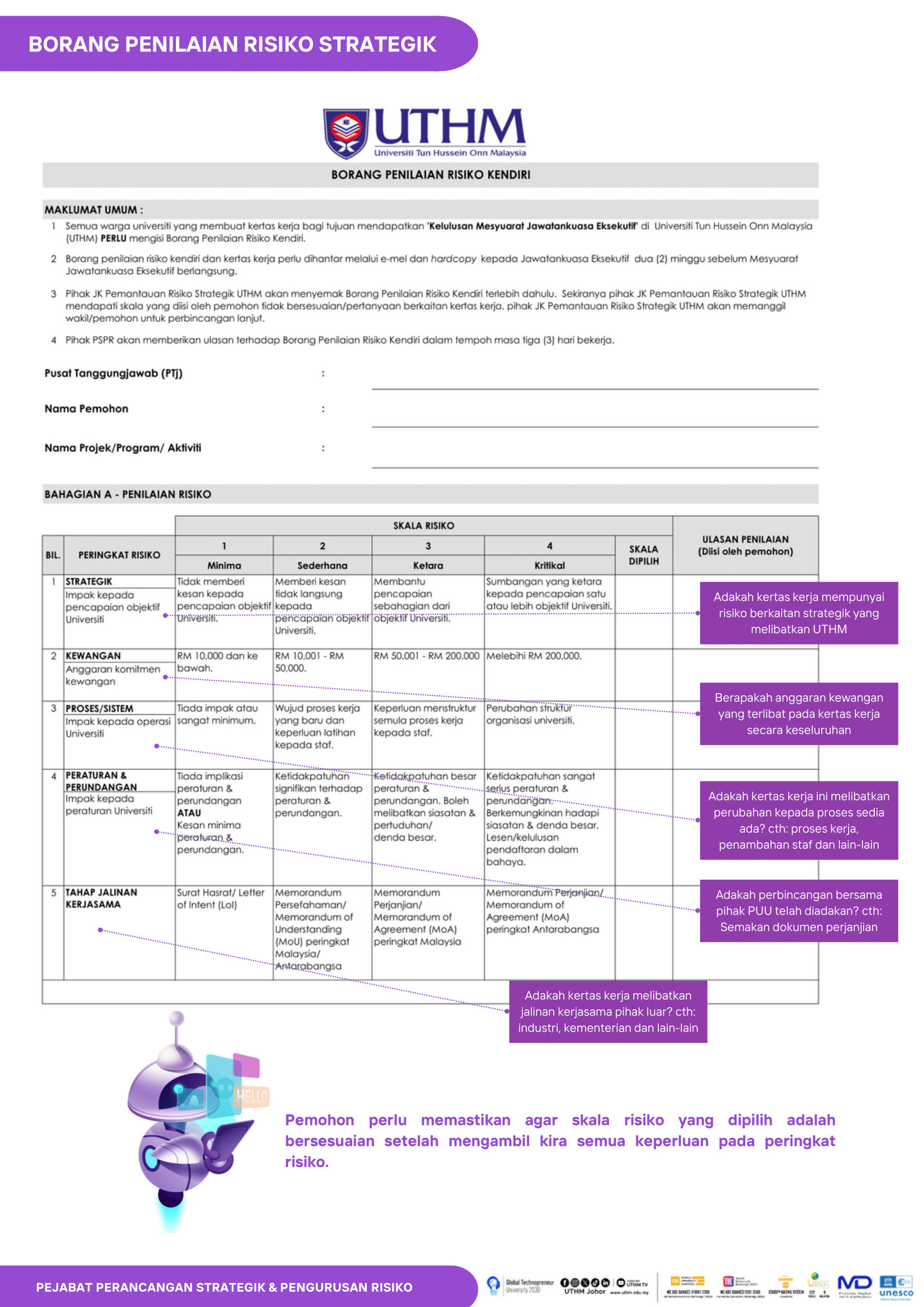 Objektif Borang Penilaian Risiko Kendiri UTHM